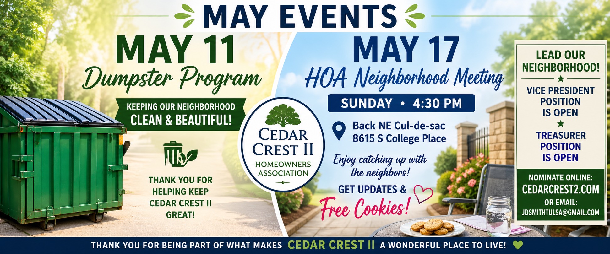 When you donate to the Cedarcrest II Beautification Project, you’re helping transform the front entrances of our neighborhood into a vibrant, welcoming space that reflects the care and commitment we share as a community.